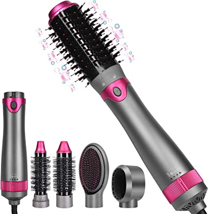 5 in 1 Hair Dryer Brush Blow Dryer Brush, Detachable Brush Kit Hot Air Brush Negative Ion One-Step Styler Volumizer Fast Drying Combing Styling Straightening Curling Interchangeable Brush Head.